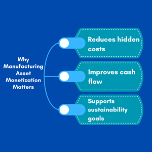 Manufacturing asset monetization, as a key part of manufacturing asset management, is the process of extracting financial value from underutilized or idle manufacturing assets such as machinery, equipment, and facilities. The goal is to turn these resources into revenue or liquidity, improving capital efficiency and supporting long-term sustainability.
