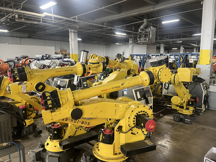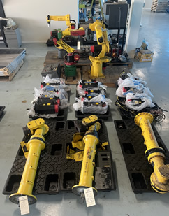 In addition to robots, the auction includes welders by Miller, Fronius, and Lincoln. A vast selection of FANUC and ABB robot parts, motors, controllers, drives, and boards (many unused) are also for sale.